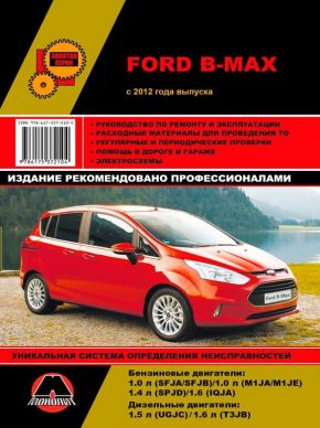 Профессиональное техническое руководство по ремонту Ford B-Max, а также инструкция по техобслуживанию и эксплуатации автомобилей Форд В-Макс с 2012 года выпуска, оборудованных бензиновыми двигателями 1,0 л. (SFJA / SFJB) / 1,0 л. (M1JA / M1JE) / 1,4 л. (SPJD) / 1,6 л. (IQJA) и дизельными двигателями 1,5 л. (UGJC) / 1,6 л. (T3JB). Мощность силовых агрегатов 75 / 90 / 95 / 100 / 105 / 120 л. с. соответственно.