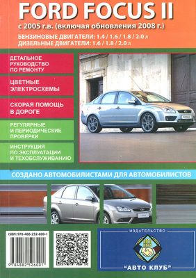 Пособие по ремонту Форд Фокус 2, а также инструкция по эксплуатации и техническому обслуживанию Ford Focus II с 2005 г выпуска (включая рестайлинг 2008 г), оснащенных бензиновыми двигателями рабочим объемом 1,4, 1,6, 1,8, 2,0 л и дизельными агрегатами объемом 0,6, 1,8, 2,0 л.