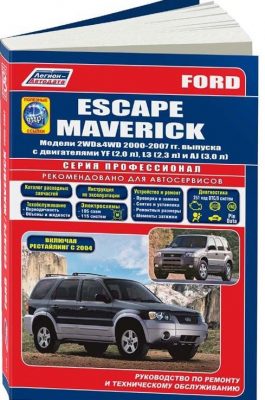 Иллюстрированное подробнейшее пошаговое справочно-информационное издание Руководство по ремонту Форд Маверик, Форд Эскейп, а также инструкция по эксплуатации, техническому обслуживанию и развернутое устройство Форд Маверик, Форд Эскейп с 2000-2007 гг. выпуска, включая рестайлинговый вариант 2004 года в т.ч. с изменениями в трансмиссии. Модели оснащались бензиновыми двигателями YF (2,0 л.), L3 (2,3 л.) и AJ (3,0 л.). Ремонт Форд Ford Maverick. Каталог расходных запчастей. Эксплуатация. ТО. Устройство. Схемы электрических соединений.