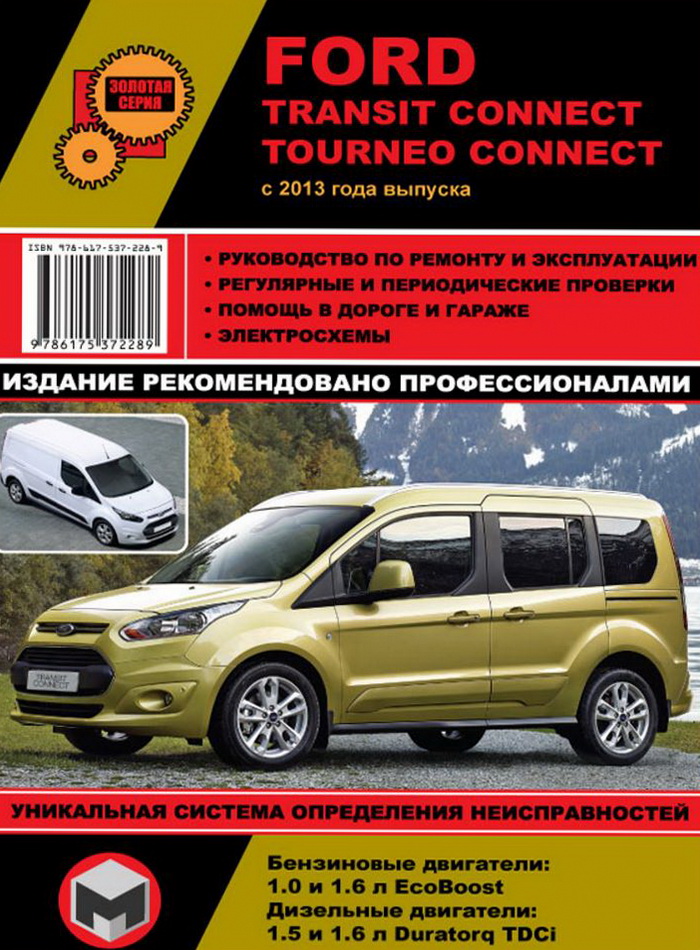 Книга по ремонту Ford Transit Connect, руководство по эксплуатации, инструкция по обслуживанию Форд Транзит Коннект с 2013 г. выпуска, оснащенных бензиновыми двигателями рабочим объемом 1,0, 1,6 литра, дизельными двигателями рабочим объеомм 1,5, 1,6 литра.