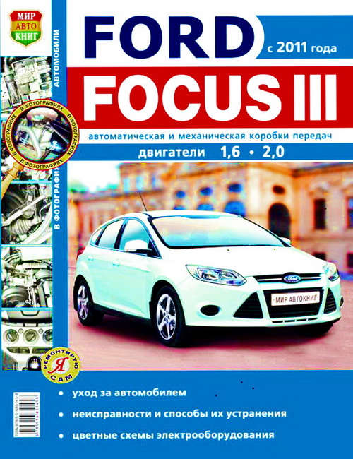 Книга по ремонту Форд Фокус-3, инструкция по эксплуатации Ford Focus-3, пособие по обслуживанию Форд Фокус 3. Двигатели 1,6 и 2,0 литра.