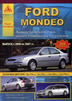 Справочное издание Книга по ремонту Форд Мондео, а также устройство, руководство по эксплуатации и техническому обслуживанию автомобилей Ford Mondeo 2000-2007 гг. выпуска, оборудованных бензиновыми двигателями рабочим объемом 1,8, 2,0, 2,5 л., а также дизельными двигателями рабочим объемом 2,0 л. Ремонт узлов и агрегатов Форд Мондео. Эксплуатация, техобслуживание, электрические схемы.