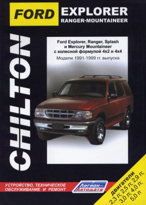Справочно-информационное иллюстрированное издание Книга по ремонту Ford Ranger, Ford Explorer, Ford Ranger Splash и Mercury Mountaineer, а также руководство по эксплуатации и техническому обслуживанию, устройство Ford Ranger, Ranger Splash, Explorer и Mercury Mountaineer 1991-1999 гг. выпуска, оборудованных бензиновыми двигателями рабочим объемом 2,3, 2,5, 2,9, 3,0, 4,0, 5,0 л.
