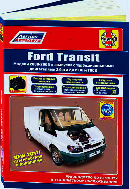 Книга по ремонту Форд Транзит 2000-2006 г. выпуска, оборудованных турбодизельными двигателями рабочим объемом 2,0 и 2,4 литра.