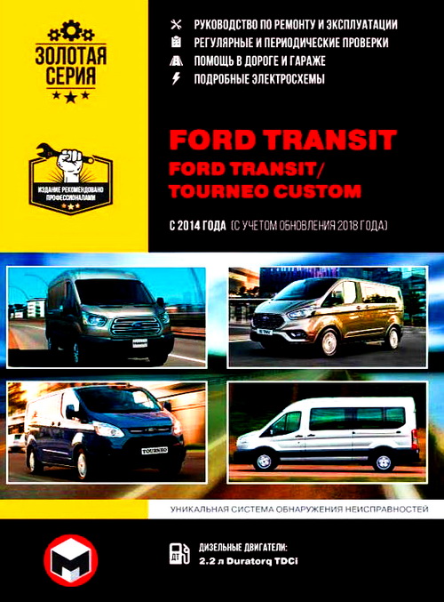 Книга по ремонту Форд Транзит, устройству, руководство по эксплуатации и техническому обслуживанию Ford Transit / Tourneo Custom с 2014 г. (обновление 2018 года в книге учтено) выпуска, оснащенных дизельным двигателем Duratorq TDCI рабочим объемом 2,2 литра, мощностью 122, 135, 155 л.с. Ремонт Форд Транзит. Инструкция по эксплуатации. Рекомендации по техническому обслуживанию. Электросхемы.