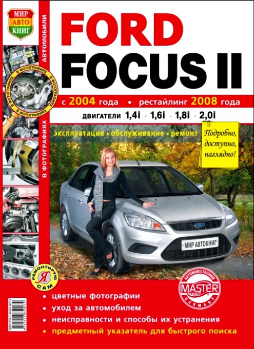 Подробное, в цветных фотографиях, пособие по ремонту Ford Focus 2, инструкция по эксплуатации и техническому обслуживанию, устройство автомобилей Форд Фокус 2 с 2004 года выпуска в кузове седан, включая информацию о рестайлинговых моделях с 2008 года выпуска. Автомобили оборудованы двигателями 1,4i, 1,6i, 1,8i, 2,0i. Ремонт Форд Фокус-2 в кузове седан.