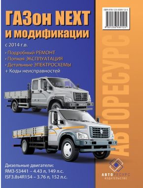 Руководство по ремонту ГАЗон Некст, книга по эксплуатации и обслуживанию ГАЗон Next с двигателями ЯМЗ 53441, объем 4,43 литра, мощностью 149 л.с. Cummins Isf, объем 3,8 литра, мощностью 152 л.с.