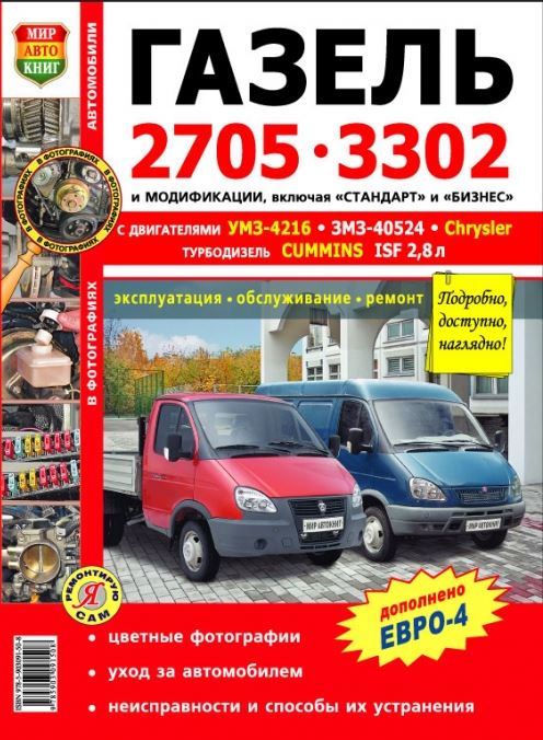 Цветное пособие по ремонту ГАЗель (ГАЗ 2705, ГАЗ 3302), оборудованных двигателями УМЗ-4216, ЗМЗ405124, Chrysler, Cummins ISF.