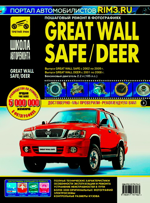 Подробное иллюстрированное справочно-информационное руководство по ремонту Great Wall Deer / Great Wall Deer, а также доскональное руководство по эксплуатации и техническому обслуживанию Great Wall Deer / Great Wall Safe, подробно рассмотренное устройство Great Wall Deer (2001-2008 гг. выпуска) / Great Wall Safe (2002-2009 гг. выпуска), оборудованных бензиновыми моторами рабочим объемом 2,2 л. (105 л.с.). Ремонт в фотографиях. Эксплуатация, ТО, электросхемы.