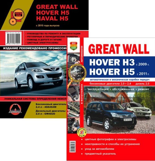 Оба руководства по ремонту, эксплуатации и техническому обслуживанию Great Wall Hover H5 / Great Wall Haval H5 / Hover H3 значительно облегчат процесс работы с автомобилем в гараже или автомастерской, поддержат в сложной ситуации на дороге, помогут максимально долго сохранять авто в оптимальном рабочем состоянии.
