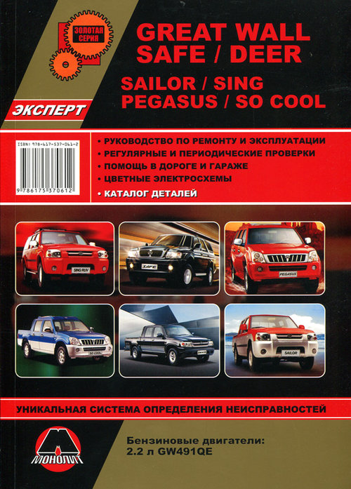 Справочно-информационное иллюстрированное издание Пособие по ремонту Great Wall Sing, а также устройство, руководство по эксплуатации и техническому обслуживанию, каталог деталей, сборочных единиц и запчастей, регулярные и периодические проверки автомобилей Great Wall Sing, оборудованных бензиновыми двигателями GW491QE рабочим объемом 2,2 л.