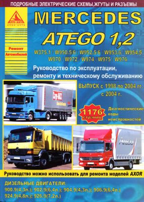 Подробнейшее иллюстрированное информационно-справочное издание инструкция по ремонту Mercedes Atego 1, 2, руководство по техническому обслуживанию и эксплуатации Mercedes Atego 1, 2, устройство Mercedes Atego 1 1998-2004 гг. выпуска, Mercedes Atego 2 с 2004 г. выпуска (рассмотрены модели W375.1 / W950.5/6 / W952.5/6 / W953.6 / W954.5 / W970 / W972 / W974 / W975 / W976), оснащенных дизельными агрегатами 900.9, 904.9 (рабочим объемом 4,3 л.), 924.9 (4,8 л.), 902.9, 906.9 (6,4 л.), 926.9 (7,2 л.). Эту книгу можно использовать и в качестве руководства по ремонту Мерседес Аксор. Подробнейшее справочное издание. Ремонт Мерседес Атего. Инструкция по эксплуатации. Техобслуживание. Схемы электрооборудования.