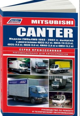 Справочно-информационный иллюстрированный мануал руководство по ремонту Мицубиси Кантер, а также устройство Мицубиси Кантер, руководство по техническому обслуживанию и эксплуатации заднеприводных и полноприводных автомобилей Mitsubishi Canter (модели 2WD, 4WD) с 1993 г. выпуска, оборудованных дизельными двигателями 4M40 рабочим объемом 2,8 л., 4D36 рабочим объемом 3,6 л., 4D34-T4 (с турбонадувом) рабочим объемом 3,9 л., 4D33 рабочим объемом 4,2 л., 4D35 рабочим объемом 4,6 л., 4M51 рабочим объемом 5,2 л. Ремонт узлов и агрегатов, ТО, эксплуатация, устройство, диагностика, схемы электрических соединений.