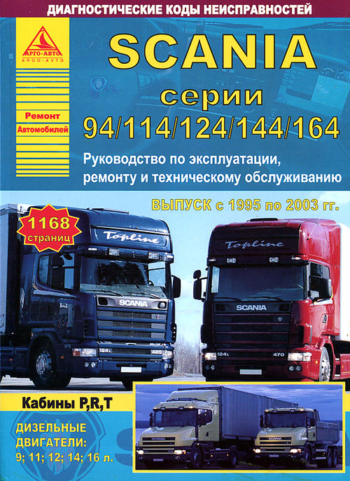 Подробнейшее информационно-справочное иллюстрированное издание руководство по ремонту Scania PRT 94 / 114 / 124 / 144 / 164, а также устройство, руководство по техническому обслуживанию Scania серии 94 / 114 / 124 / 144 / 164. Машины выпуска 1995-2003 гг., оборудованы дизельными агрегатами рабочим объемом 9, 11, 12, 14, 16 л. Кабины P, R, T.