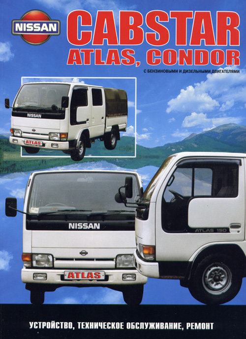 Руководство по ремонту и техническому обслуживанию грузовых автомобилей Nissan Cabstar, Atlas (Atras), Condor 1984-1996 гг. выпуска, с бензиновыми двигателями NA20S и дизельными двигателями TD25, TD27, BD30, FD42, FD46.