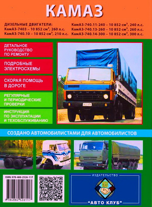 Пособие по ремонту, обслуживанию и эксплуатации КамАЗ 5320, 5410, 55102, 55111, 53212, 53211, 53213, 54112, 43114, 43118, 65111, 53228, 44108, 43115, 65115, 6540, 53229, 4326, 53215, 54115 с колесными формулами 4х2, 4х4, 6х4, 6х6, 8х8, оснащенных двигателями КамАЗ 7403, 740.10, 740.11.240, 740.13.260, 740.14.300.