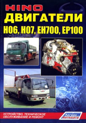 Пособие по ремонту двигателей Hino, руководство по обслуживанию и устройству дизельных двигателей Hino серии Н06С (6,5 л), Н06С-Т (6,5 л), Н07С (6,7 л), Н07С-Т (6,7 л), H07D (7,4 л), ЕН700 (6,4 л), EH700-TI (6,4 л) и ЕР100 (8,8 л).