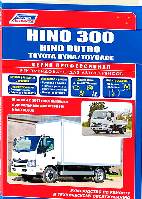 Руководство по ремонту Hino 300, книга по ремонту Хино 300 с 2011 г. выпуска, оборудованных дизельными двигателями N04C рабочим объемом 4 литра.