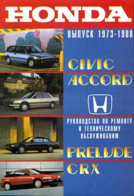 Справочное издание Руководство по ремонту Honda Accord, Civic, CRX, Prelude, а также руководство по эксплуатации и техническому обслуживанию автомобилей Honda Civic, Accord, CRX, Prelude 1973-1988 гг. выпуска.