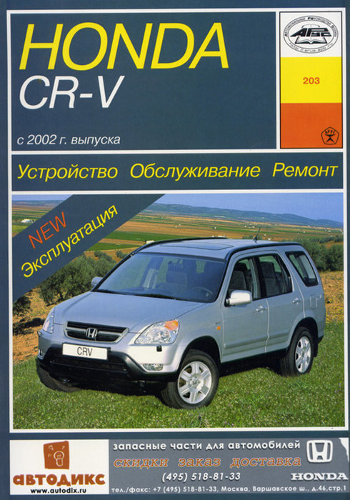 Издание справочное Руководство по ремонту Хонда СРВ, а также руководство по техническому обслуживанию и эксплуатации, устройство автомобилей автомобилей Honda CR-V с 2002 г. выпуска, оборудованных бензиновыми двигателями рабочим объемом 2,0, 2,4 л., оборудованные 4-ступенчатой АТ или 5-ступенчатой РКПП. Ремонт Хонда СРВ. Эксплуатация, техобслуживание, электрические схемы.