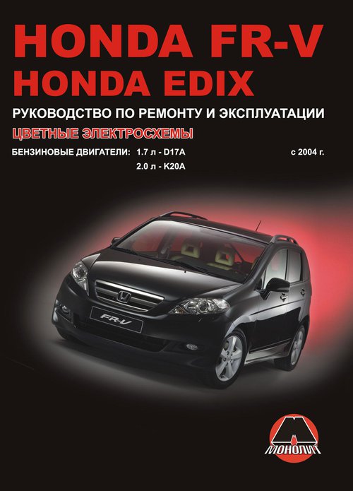 Иллюстрированное справочно-информационное издание Руководство по ремонту Honda Edix / Honda FR-V, а также устройство, руководство по эксплуатации и техническому обслуживанию автомобилей Honda Edix / Honda FR-V с 2004 г. выпуска, оборудованных бензиновыми двигателями D17A рабочим объемом 1,7 л, K20A рабочим объемом 2,0 л.