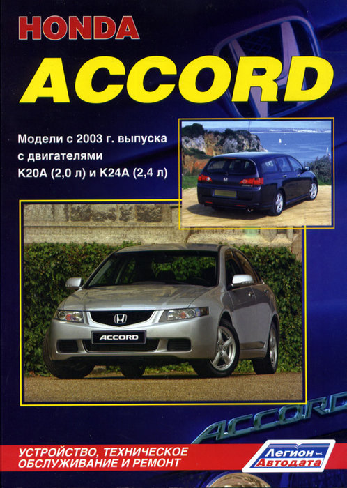 Справочно-информационный мануал Книга по ремонту Honda Accord, а также руководство по эксплуатации и техническому обслуживанию, устройство переднеприводных автомобилей Honda Accord с 2003 г. выпуска, оборудованных бензиновыми двигателями К20А (2,0 л) и К24А (2,4 л). Ремонт узлов и агрегатов Хонда Аккорд. Устройство автомобиля, техобслуживание, инструкция по эксплуатации. Схемы электрических соединений.