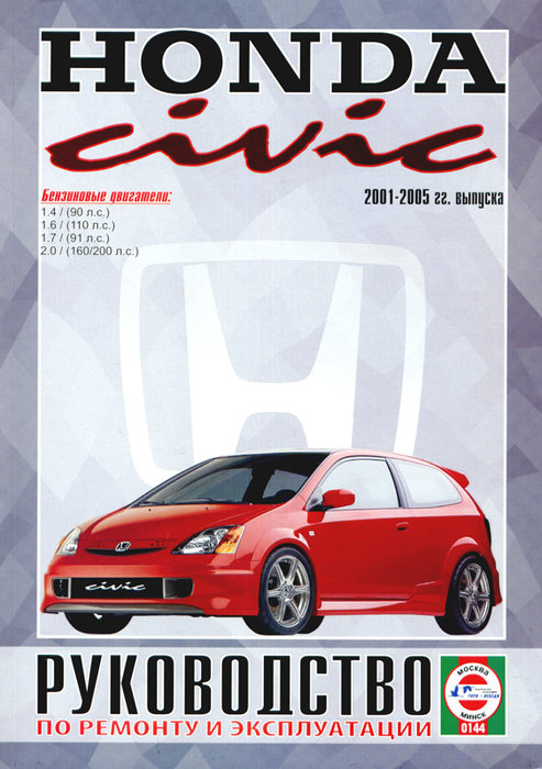 Руководство по ремонту, техническому обслуживанию и эксплуатации автомобилей Honda Civic 2001-2005 гг. выпуска, оборудованных бензиновыми двигателями рабочим объемом 1,4, 1,6, 1,7, 2,0 л. Ремонт Хонда Сивик. Эксплуатация, устройство, схемы электрооборудования.