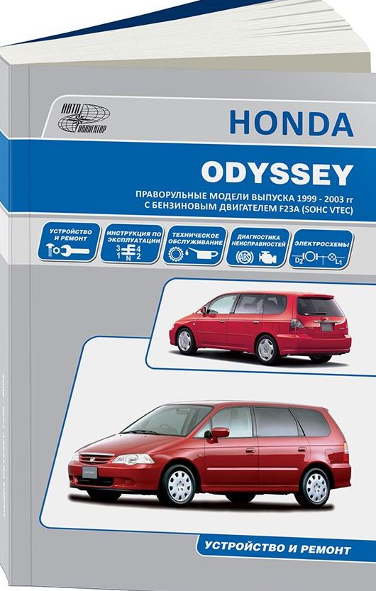 Широкораспространенное мнение российских автолюбителей о том, что едва ли не все спецстанции ТО – сейчас зашла речь о Хонде – и в наши дни, за какими-то нечастыми исключениями, выстроены внутри крупных городских поселений, недалеко от их границ или на пересечениях магистралей федерального значения, действительно и сегодня. Но нередки такие случаи, когда что-то нехорошее происходит в таком месте дороги, где, образно говоря, ни единой живой души и скорой техпомощи ждать не приходится. И спрогнозировать подобные происшествия невозможно – неполадки практически всегда становятся громом среди ясного неба. Вот в такие минуты такое литературное издание Honda Odysey и становится эдаким спасательным кругом для Вас, если характер поломки не слишком серьезен и можно обойтись своими силами, ну а если транспортировка авто до ближней станции ТО неизбежна, то для ее техников, у которых может элементарно не оказаться должной квалификации, книга по ремонту Honda Odyssey превратится в незаменимую и качественную подсказку, при помощи которой они смогут быстро и грамотно совершить операции по ремонту и не причинить при этом Вашей Хонде какой-либо дополнительный вред.