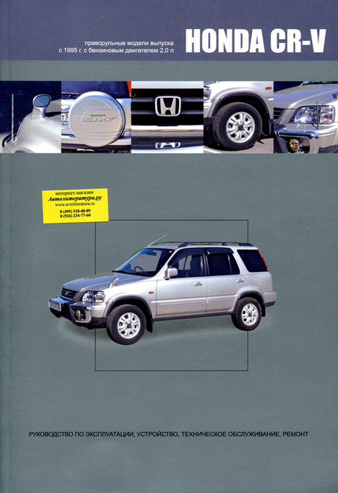 Иллюстрированное справочно-информационное издание Книга по ремонту Honda CR-V, а также руководство по эксплуатации и техническому обслуживанию, устройство Honda CR-V, модели с правым рулем, производственный выпуск которых осуществляется с 1995 года. Эти машины оборудуются бензиновыми двигателями B20B рабочим объемом 2,0 л. Ремонт праворульных Хонда СРВ. Устройство, техническое обслуживание, электрические схемы.