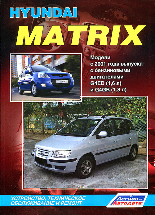 Иллюстрированное справочно-информационное издание Пособие по ремонту Hyundai Matrix, а также инструкция по эксплуатации, техническому обслуживанию и подробное устройство Hyundai Matrix с 2001 года выпуска, а также рестайлинговая модель 2008 года. Машины оборудуются бензиновыми двигателями G4ED и G4GB рабочим объемом 1,6 и 1,8 л. соответственно.