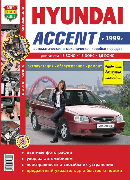 Руководства серии Я ремонтирую сам московского издательства технической литературы Мир Автокниг уже не один год пользуются заслуженной популярностью у владельцев самых разных марок автомобилей во всех уголках нашей страны. Очередная книга от издательства, как обычно с подробными цветными фотографиями и комментариями к ним, в подробностях повествует пользователю о ремонте, своевременном уходе, грамотной эксплуатации и техобслуживании, а также о потенциальных неисправностях автомобилей Хундай Акцент и возможностях их устранения.