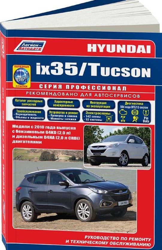Многочисленные описания работ, приведенные в данном автопособии, в значительной степени поспособствуют пользователю в скорейшем устранении любых возникших технических неприятностей как в подготовленных к процедурам условиях гаража, так и, что, согласитесь, бывает куда более актуально, во время путешествия, особенно если форс-мажор проявится уже вдали от цивилизации, что означает фактическое отсутствие возможности обнаружить квалифицированного и грамотного технического специалиста. Также данное руководство поможет подобрать водителю все необходимые запчасти Хендай Туксон, Хендай ix35.