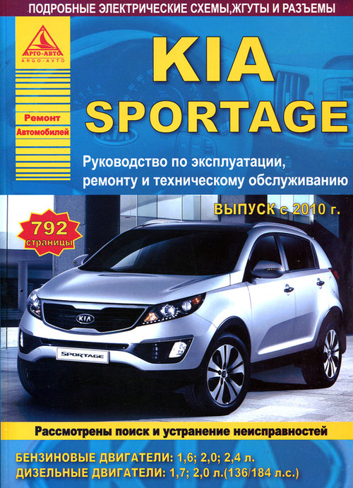 Представленное подробнейшее издание от популярного издательства технической книги Арго-Авто (Атласы Автомобилей) разбито на несколько главных параграфов. В начале каждого из них авторы мануала кратко рассматривают описание устройства соответствующих разделу механизмов, систем и отдельных агрегатов транспортного средства. Во втором разделе этого издания приводятся необходимые советы и конкретные указания по осуществлению разборки и сборки компонентов, важным регулировкам и всестороннему ремонту составляющих и узлов машины. Помимо уже названного в разделах книги приведены перечни возможных неисправностей, которые могут возникнуть в процессе эксплуатации Киа Спортидж 3 и рекомендации по устранению уже выявленных пользователем неполадок или проведению замены вышедшей из строя детали. Потребителю будет дана подсказка необходимо ли для осуществления какой-либо конкретной процедуры специальное ремонтное приспособление и в случае если оно нужно, объясняется какое именно.