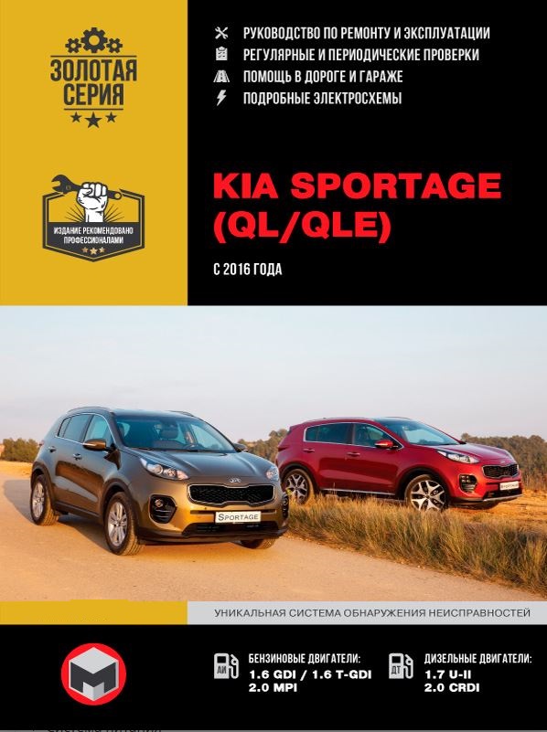 Книга по ремонту Киа Спортейдж, руководство по обслуживанию, инструкция по эксплуатации Kia Sportage с 2016 г. выпуска, оборудованных бензиновыми двигателями GDI, T-GDI, MPI рабочим объемом 1,6 и 2,0 литра, а также дизельными двигателями U-II, CRDI рабочим объемом 1,7 и 2,0 литра, мощностью 115, 132, 136, 150, 177, 185 л.с. Ремонт узлов и агрегатов. Инструкция по эксплуатации. Схемы электроооборудования.