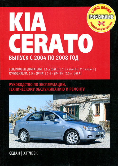Справочное иллюстрированное издание Пособие по ремонту Киа Серато, устройство, руководство по эксплуатации и техническому обслуживанию Kia Cerato в кузове седан и универсал. Эта модель выпускалась с 2004 по 2008 года, на нее устанавливались рядные бензиновые двигатели рабочим объемом 1,6, 2,0 л., а также рядные турбодизели с непосредственным впрыском Common Rail рабочим объемом 1,5, 1,6 и 2,0 л. Оснащался автомобиль 5-ти ступенчатой МКП или 4-х ступенчатой АКП.
