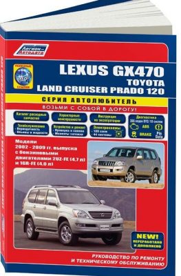 Справочно-информационное иллюстрированное издание Руководство по ремонту Lexus GX470 / Toyota Land Cruiser 120 Prado, а также устройство, руководство по эксплуатации и техническому обслуживанию автомобилей Lexus GX470 / Toyota Land Cruiser 120 Prado с 2002 г. выпуска, оборудованных бензиновыми двигателями 1GR-FE рабочим объемом 4,0 л. и 2UZ-FE рабочим объемом 4,7 л. Ремонт Лексус 470. Каталог расходных запчастей. Устройство. Диагностика. ТО. Эксплуатация. Электрические схемы.