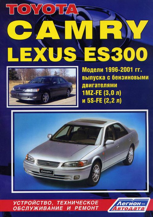 Руководство по ремонту Lexus ES 300, эксплуатации и техническому обслуживанию автомобилей Lexus ES300 / Toyota Camry 1996-2001 гг. выпуска, оборудованных бензиновыми двигателями с системой впрыска топлива 1MZ-FE (3,0 л) и 5S-FE (2,2 л). Пособие также может быть использовано при ремонте праворульных автомобилей Windom / Camry Gracia, Avallon / Mark II Wagon (MCV20 / SXV20).