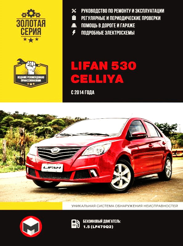 Руководство по ремонту Lifan 530, книга по эксплуатации, инструкция по обслуживанию Лифан 530 с 2014 г. выпуска, оборудованных бензиновыми двигателями LF479Q2 рабочим объемом 1,5 литра. Ремонт Лифан 530. Устройство. Эксплуатация. ТО. Система обнаружения неисправностей. Электрические схемы.