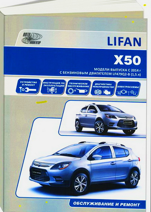 Руководство по ремонту Лифан Х50, книга по ремонту Lifan X50 с 2014 г. выпуска, оборудованных бензиновыми двигателями LF479Q2-B объемом 1,5 литра.