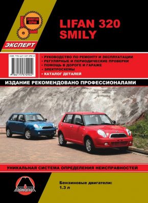 Справочно-информационное иллюстрированное издание руководство по ремонту Lifan 320 (Lifan 320 Smily, Lifan 320 / Lifan Smily), устройство Lifan 320 Smily, подробное руководство по эксплуатации и техническому обслуживанию Lifan 320 Smily, а также каталог запчастей Lifan 320 Smily, каталог деталей и сборочных единиц Lifan 320 Smily, которые выпускаются в том числе и на заводе в Черкесске и оборудуются бензиновыми силовыми агрегатами LF479Q1 рабочим объемом 1,3 л. Мощность мотора составляет 89 л.с. Ремонт Лифан 320. Эксплуатация, обслуживание, помощь в дороге и гараже. Схемы электрооборудования.
