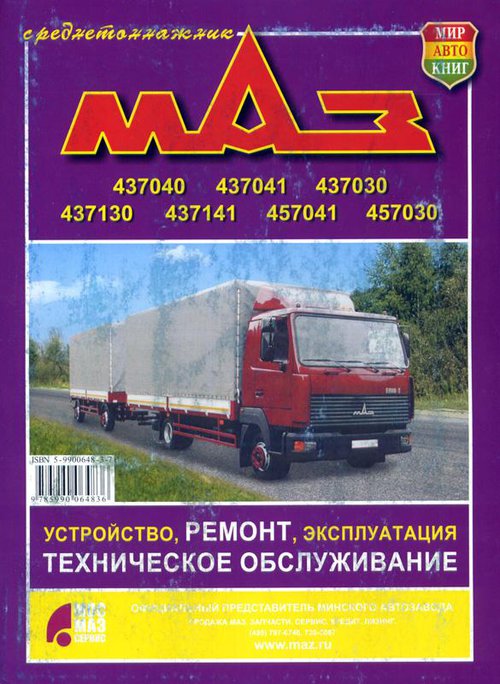 Руководство по ремонту, эксплуатации и техническому обслуживанию, устройство грузовых автомобилей МАЗ-437040, -437041, -437030, -437130, -437141, -457041, -457030.