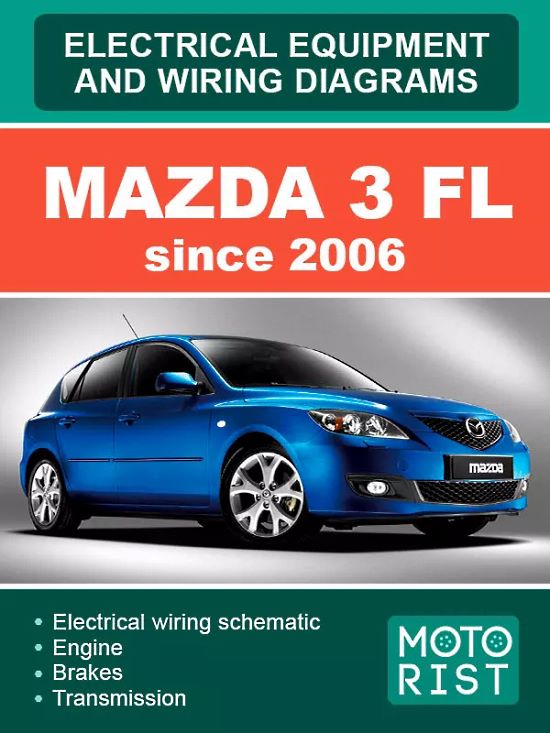 В руководстве приведены подробные электросхемы расположения разъемов, злектрических соединений и жгутов проводки. Отлично подойдет тем, кто желает ознакомится с устройством и провести самостоятельный ремонт электронных компонентов первого поколения Мазда 3 в кузове FL (выпуск 2006 – 2009 года).