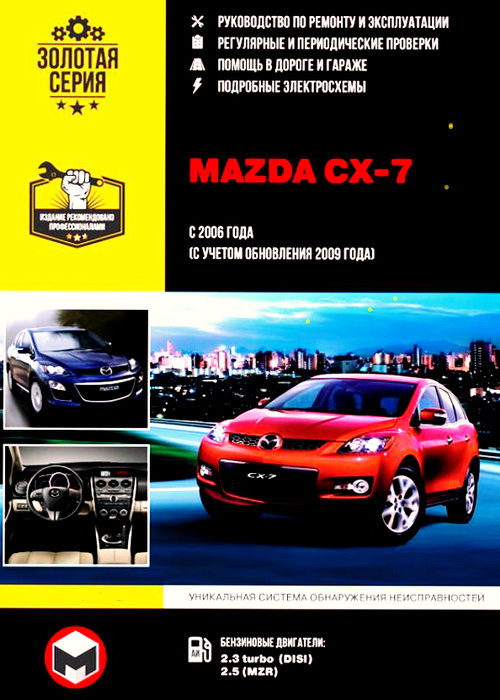 Справочное иллюстрированное издание руководство по ремонту Мазда СХ-7, устройство Мазда СХ-7, руководство по эксплуатации и техническому обслуживанию Мазда СХ-7, которые выпускаются с 2006 года (также рассмотрен рестайлинговый вариант модели 2009 года) и оборудуются бензиновыми силовыми агрегатами рабочим объемом 2,3 л. turbo. Мощность двигателя 244 л.с. Ремонт узлов и агрегатов Maxda CX-7. Эксплуатация, ТО, помощь в дороге и гараже, схемы электрических соединений. Система определения неисправностей.