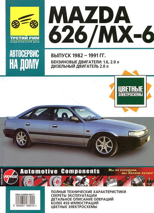 Пособие по ремонту Mazda626 / Mazda MX-6, пособие по эксплуатации и техническому обслуживанию автомобилей Mazda 626 / Mazda MX-6 с 1982 по 1991 гг. выпуска (Mazda 626 Wagon (универсал) – до 1995 г.), а также моделей Mazda Capella и Mazda Persona, оборудованных четырехцилиндровыми бензиновыми двигателями рабочим объемом 1,6, 2,0 л. и дизельными двигателями рабочим объемом 2,0 л.