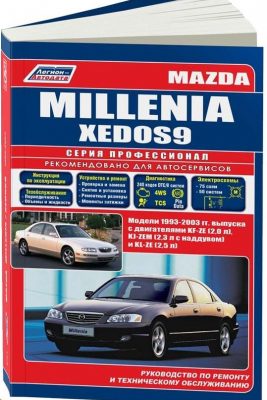 Справочно-информационное подробное иллюстрированное издание Руководство по ремонту Mazda Millenia / Mazda Xedos 9, устройство Mazda Millenia / Mazda Xedos 9, пошаговое руководство по эксплуатации и техническому обслуживанию Mazda Millenia / Mazda Xedos 9, как с левым так и с правым рулем 1993-2003 гг. выпуска, оборудованных бензиновыми двигателями KF-ZE, KJ-ZEM и KL-ZE рабочим объемом 2,0, 2,3 с наддувом и 2,5 л. соответственно. Ремонт Мазда Миления. Эксплуатация, ТО, схемы электрических соединений.
