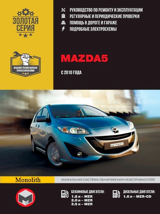 Книга (мануал) по ремонту и эксплуатации Mazda 5 (кузов CW) третьего поколения. В электронной книге рассмотрены автомобили 2010 – 2015 года выпуска с бензиновыми и дизельными двигателями.
