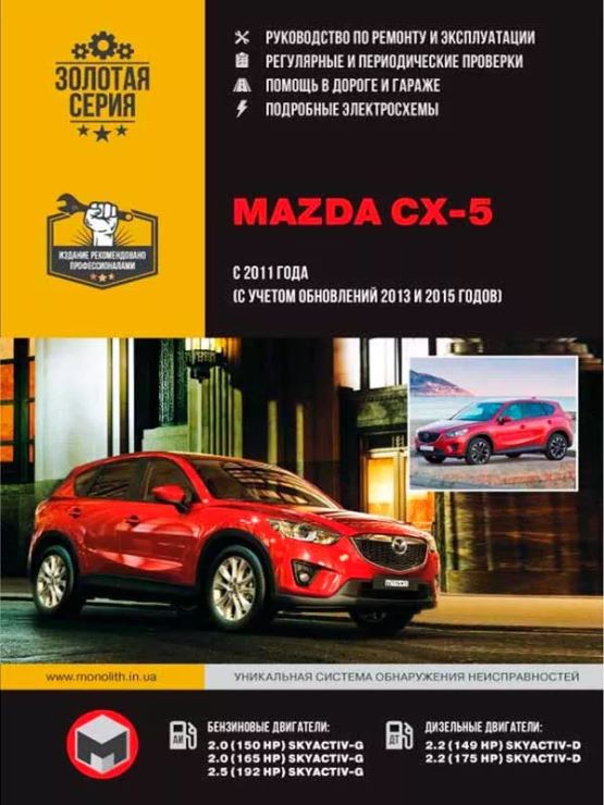 Книга (мануал) по ремонту и эксплуатации Мазда CX-5 (кузов KE) первого поколения. В электронный книге рассмотрены автомобили 2011 – 2017 года выпуска с бензиновыми и дизельными двигателями. Руководство прекрасно подойдет тому, кто желает ознакомится с устройством и провести самостоятельный ремонт технических узлов и агрегатов японского автомобиля.
