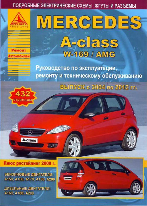 Универсальное иллюстрированное руководство по ремонту Mercedes A-Class, устройство, инструкция по эксплуатации и техническому обслуживанию автомобилей Мерседес Бенц А класса, поступивших в продажу в период с 2004 по 2012 год (включая информацию о рестайлинговых моделях 2008 года). Пособие содержит самые полные данные об автомобилях Mercedes Benz A-Class в кузове W169 / AMG и оборудованных бензиновыми двигателями А150, А160, А170, А180, А200 и дизельными двигателями А160, А180, А200. Ремонт Мерседес А класс. Инструкция по эксплуатации. Рекомендации по ТО. Электросхемы, жгуты, разъемы.