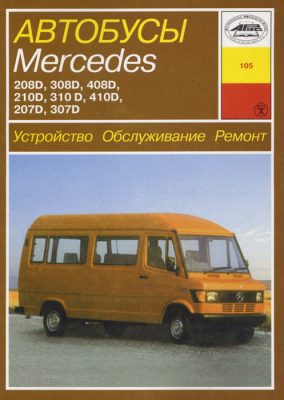 Справочное издание Руководство по ремонту Mercedes-Benz 207D, 208D, 210D, 307D, 308D, 310D, 408D, 410D, а также руководство по эксплуатации и техническому обслуживанию, устройство микроавтобусов Mercedes-Benz 207D, 208D, 210D, 307D, 308D, 310D, 408D, 410D с 1977 г. выпуска, оборудованных дизельными двигателями рабочим объемом 2,3, 2,4, 2,9 л.