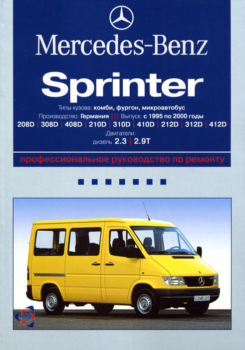 Справочное иллюстрированное издание Инструкция по обслуживанию Mercedes-Benz Sprinter, устройство, руководство по эксплуатации и ремонту Mercedes-Benz Sprinter (заводской индекс 903 / 904) в кузове фургон, микроавтобус и грузовик, выпускаемых в 1995-2000 годах концерном Daimler AG в Людвигсфельде (Германия), оборудованных дизельными двигателями литражом 2,3 и 2,9, оснащенных 5-ти ступенчатой механической либо 4-х ступенчатой автоматической КП.